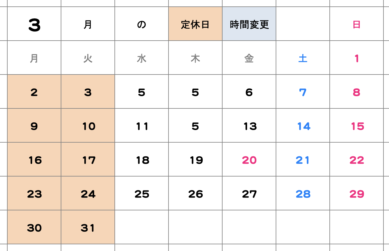 3月の定休日